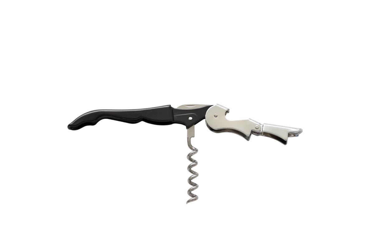 Dvoustupňový otvírák na víno, malý praktický nožík pro oříznutí fólie, v elegantním černém provedení, otvírák na pivo.Více