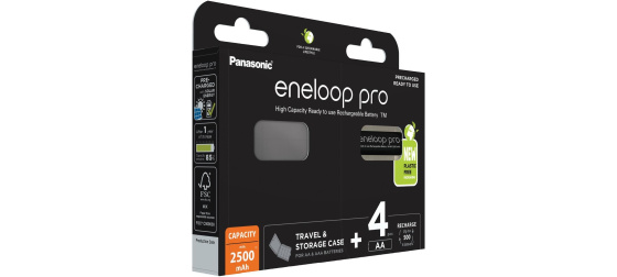 Toto balení Eneloop pro obsahuje 4 baterie AA a pouzdro pro snadné skladování.