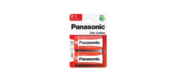 PANASONIC Zinkouhlíkové baterie Red Zinc R20RZ/2BP EU D 1,5V (Blistr 2ks)