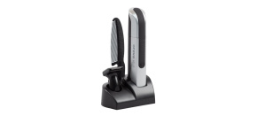 Jednoduché ovládání a údržba, 2 výměnné omyvatelné stříhací hlavy, čisticí kartáček, stojánek.