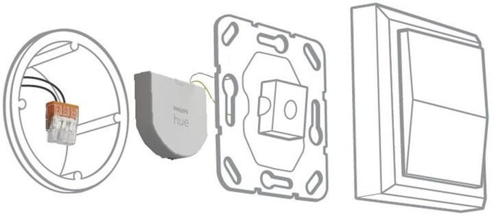 Modul nástěnného vypínače Philips Hue vyžaduje Philips Hue Bridge (prodává se samostatně). Hue Bridge vám také umožní přidat si do celé domácnosti až 50 světel a příslušenství, vytvářet časovače a rutiny a ovládat světla odkudkoli pomocí aplikace Hue – ať už jste uvnitř nebo venku.