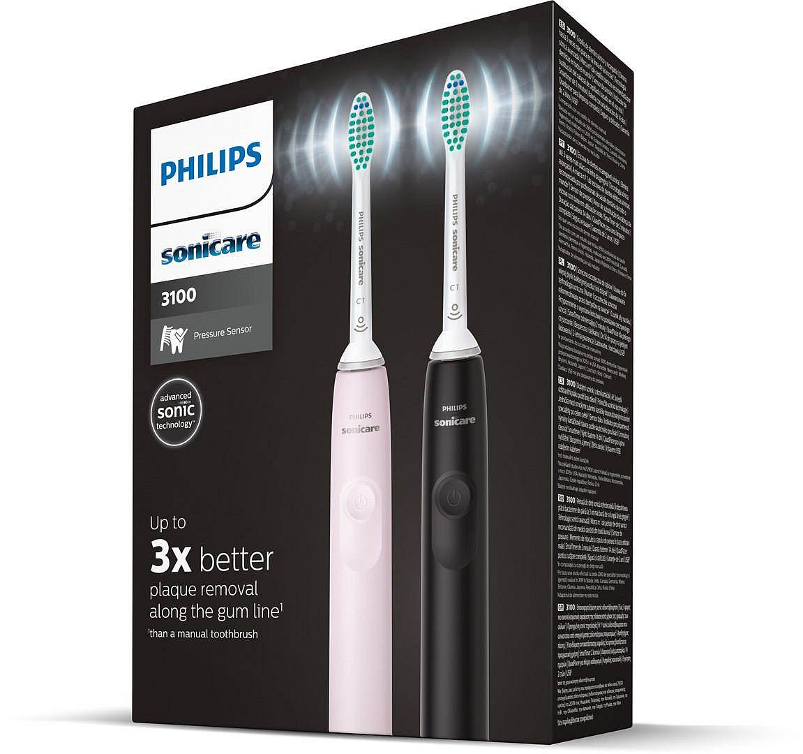Příliš velký tlak vyvíjený kartáčkovou hlavicí na zuby a dásně může způsobovat řadu zdravotních problémů, a přitom není vůbec jednoduché ho rozpoznat. Sonický elektrický kartáček nové generace Philips Sonicare 3100 je proto vybavený citlivým senzorem, který vás dokáže na nesprávný tlak upozornit. Pokud je třeba tlak zmírnit, rukojeť kartáčku zavibruje. 7 z 10 lidí uvádí, že jim tato funkce pomohla čistit si zuby lépe.