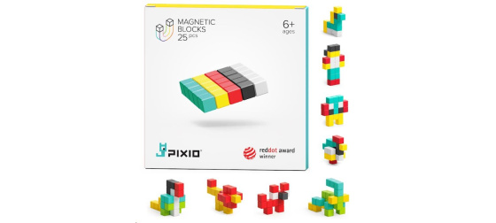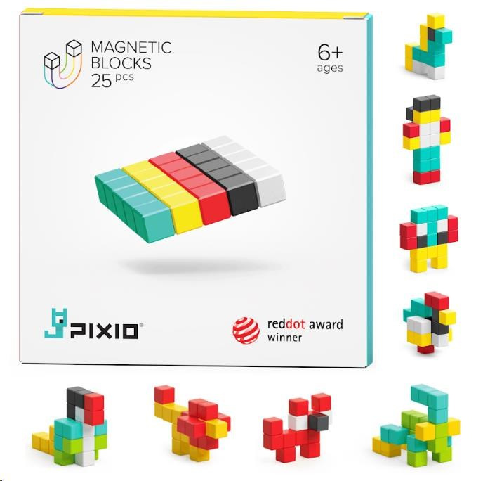 Každý z magnetických bloků PIXIO je kostka o velikosti 8x8x8mm. Uvnitř je 6 malých magnetů vážících méně než 1 g. Chytrý a unikátní design magnetů dávají nekonečné možnosti skládaní obrazců – neexistuje špatný postup, jak stavět a tvořit, protože jde jenom o kreativitu, představivost a šikovnost tvůrce. Všechny modely PIXIO jsou mezi sebou kompatibilní.
