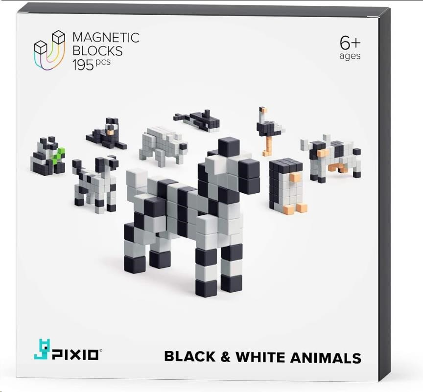 DESIGNOVÁ ŘADA PIXIO Black and White Animals obsahuje 195 bloků PIXIO ve 4 barvách. Umožní