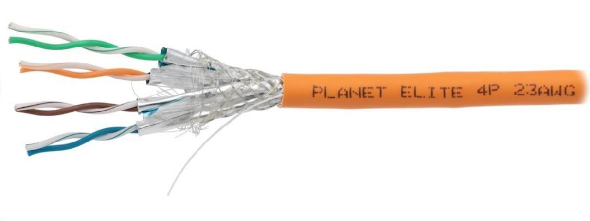 Kabel kategorie Cat6A, 500 MHz, 4pár, drát, FTP, každý pár je stíněný zvlášť, balení 500 m na dřevěném bubnu, oranžová barva, cena za balení.