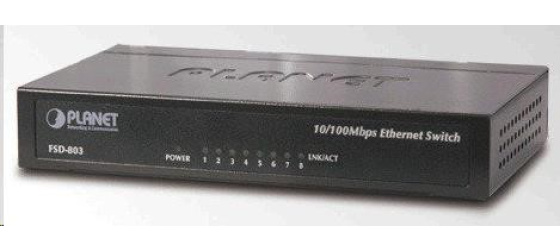 8portový přepínač. 8 portů 10/100 Base-TX. Automatická detekce 10/100Mbps, desktop. Miniaturní rozměr, kovová skříň, bez ventilátorů.