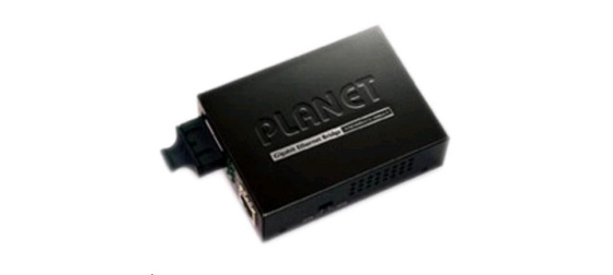 Konvertor pro přechod mezi multi-módovým a metalickým spojem pro Gigabitový Ethernet. Spojení do 550m na straně multi-módového vlákna 50/125 a do 100m na straně metalického spoje.