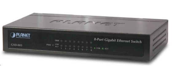 Popis Planet switch GSD-803 10/100/1000 (8X1000BASE-T), EUP, 802.3AZ, kov
