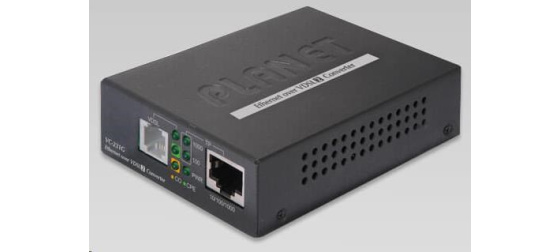 PLANET VC-231G Ethernet po telefonním vedení (technologie VDSL2). 1x LAN RJ-45, 1x VDSL2 RJ-11. Transparentní bridge. G.993.2 VDSL2, G.993.5 G.Vectoring + G.INP. Kapacitně 200/160Mbps na 200m. Dosah až 1,4km. Nastavení DIP přepínači, volitelně Master (CO) / Slave (CPE). Možný provoz na VDSL O2 lince. LRE (Long Reach Ethernet) konvertor ethernetu na VDSL2 (Very-high-data-rate Digital Subscriber Line 2) konvertor ethernetu dovoluje přenést data symetrickým párem vodičů rychlostí až 200Mbitů/s na 200m nebo 30Mbitů/s do vzdálenosti až 1,4km, přenosové rychlosti dle stavu a kvality použitého vedení. Zařízení je univerzální jako master (CO) / slave (CPE) jednotka, nastavení režimu přepínačem. Jednotka podporuje VDSL2 operační módy dle přenosových profilů "17a" a "30a", volbu dle "band Plan997" a G.993.5 G.Vectoring & G.INP postihující symetrický přenos dat vyšší rychlostí i na souběžném vedení. S pomocí externího spliteru lze zachovat hlasovou službu na telefonním vedení bez další úpravy zapojení. S výhodou tak lze využít telefonní kabelová vedení původně určená pro spojení nejen k účastníkům ale i mezi analogovými ústřednami. ISP (internet service provider) poskytovatelům je tak umožněno nabízet multimediální služby, VOD (video on demand), VoIP (voice over IP), Video phone, IPTV, apod. Aplikace VDSL2 s pokročilým G.INP a G.Vectoringem lze provozovat i v rámci aktivních prvků rozhraním SFP diky modulu XL-MGB-VDSL2-R2 (viz. doporučené příslušenství). Modem lze úspěšně provozovat nad VDSL linkami O2. ZÁKLADNÍ SPECIFIKACE Porty: 1 x 10/1000Base-T, RJ-45 1 x VDSL, RJ-11 Podpora přenosu: JumboFrame 2K MAC adres Soulad s normami: IEEE 802.3, IEEE 802.3u, IEEE 802.3ab, IEEE 802.3x, IEEE 802.3p Transparentní pro: IEEE 802.1Q VLAN tag Standard: ITU-T: G.993.1 - VDSL, G.997.1, G.993.2 - VDSL2 (profily 17a/30a), G.993.5 G. - Vectoring a G.INP, G.998 DIP přepínání: volba CPE/CO, volba modulace, volba komunikačního limitu, volba SNR Napájení: z externího adaptéru, 5V/2A Provozní teplota: 0 až 50°C, vlhkost <90% Rozměry: 97 x 70 x 26 mm Hmotnost: 184 g Lze instalovat do šasí: MC-700, MC-1500, MC-1500R Příklad dosahů a rychlostí (down/up Mb/s) na vedení s vodiči AWG24 a lepších: 200m -> 225.34Mb/122.39Mb 400m -> 151.89Mb/78.78Mb 600m -> 90.42Mb/49.93Mb 800m -> 57.70Mb/29.87Mb 1000m -> 45.33Mb/9.21Mb 1400m -> 34.74Mb/5.75Mb Nastavení pro O2 VDSL připojení modem v režimu CPE; další DIP přepínače Transmision, Band, SNR podle kvality linky v routeru na WAN rozhraní aplikovat VLAN ID:848 nad WAN nastavit PPPoE klienta, Login: O2/O2 dále věnujte pozornost nastavení vašeho routeru, jeho firewallu, přístupových práv, UPnP, atd..