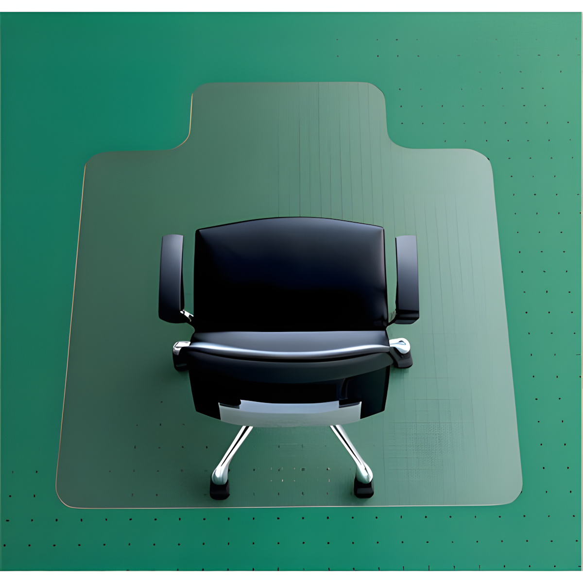 Spodní strana je opatřena tupými kotevními nopky, které zajišťují pevné a bezpečné uchycení ke koberci bez jeho poškození. Zploštělé hrany a zaoblené rohy umožňují plynulý přejezd kancelářské židle a zvyšují bezpečnost při pohybu. Podložka chrání koberec před skvrnami od tekutin, opotřebením kolečky židlí i drobnými popáleninami a je vhodná také pro prostory s podlahovým topením.