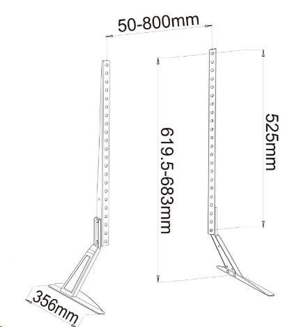 Nožky na televizi s nosností 50kg, na Tv 37" až 65", výškové nastavení Stabilní podstava na televize, univerzální, vhodné na všechny typy, velikosti a značky televizorů s podporou VESA standardu. Výškové nastavení, nosnost 50kg, barevné provedení černé, záruka 3 roky. Balení obsahuje sadu instalačního materiálu. Podstavec na televizi, nožky na Tv Ergosolid Castor 1 Technické údaje: nosnost 50kg podpora VESA standardů 100x100 až 800x500 doporučená úhlopříčka Tv 37" až 65" výškové nastevení 620mm až 683mm šířka podstavců 356mm protiskluzové podložky minimalistický design stabilní, bezpečný materiál ocel instalační materiál barevné provedení černé záruka 3 roky Ergosolid Castor 1 podporuje VESA standardy: VESA 100x100 VESA 200x100 a 100x200 VESA 200x200 VESA 300x100 a 100x300 VESA 300x200 a 200x300 VESA 300x300 VESA 400x200 a 200x400 VESA 400x300 a 300x400 VESA 400x400 VESA 600x400 VESA 800x400 VESA 800x500. Fiber Mounts s.r.o., Nádražní 1296/4 69601 Rohatec Česká republika, mailto: info@drzakyastolky.cz