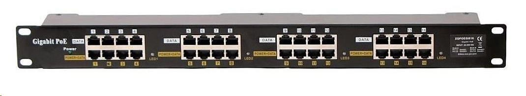 Aktivní/pasivní POE injektor - 16x 1Gb/s, stíněný panel, 802.3af/at