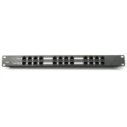 Panel integrující 12 pasivních POE injektorů vhodný pro napájení až dvanácti zařízení.