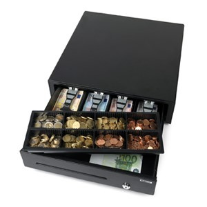 Zásuvka nabízí jak elektrické otevírání prostřednictvím kompatibilních pokladních systémů a tiskáren s RJ12 (12/24 V), tak i mechanické otevření pomocí klíče. Je vybavena vyjímatelným mincovníkem, čtyřmi přihrádkami na bankovky a osmi přihrádkami na mince. Pro vyšší bezpečnost je k dispozici oddělený prostor pro cenné dokumenty a vyšší hotovost.