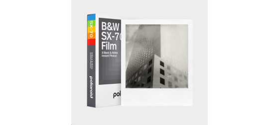 Eight instant black and white photos with white frames. For use in Polaroid SX-70-type cameras. Images begin to emerge within a minute. Full development takes 5-10 minutes. SX-70 film has a lower ISO than our other films, which makes it perfect for capturing fine detail in well-lit conditions. Our latest b&w film formula makes high contrast photos with depth, atmosphere and distinctive analog texture. Its iconic white frame is a piece of instant history.. Polaroid Corporation, 1265 Main Street, Waltham, Massachusetts 02451, USA, support@polaroid.com