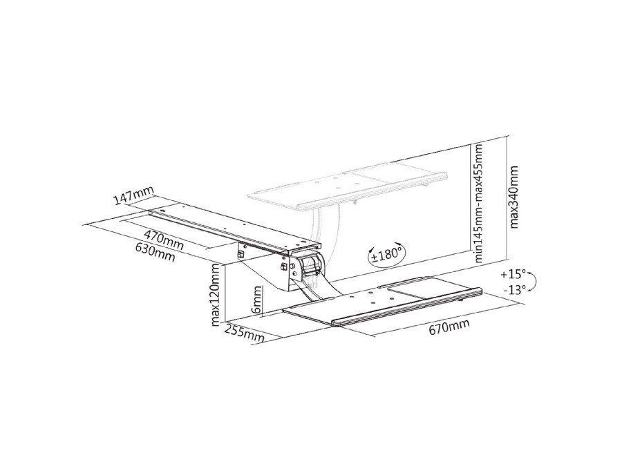 Polička na klávesnici Fiber Mounts M7C95 Plně polohovatelná přídavná polička na klávesnici, rozměry 670x255mm Profesionální plně polohovatelná stolní přídavná polička na klávesnici a myš, která poskytuje skutečné ergonomické řešení pro Vaši nejpohodlnější práci. Nastavení ve všech polohách s aretací. Pokud požadujete to nejlepší a záleží Vám na zdravém pracovním stylu, tuto poličku si zamilujete. Profesionální stolní polička na klávesnici, plně polohovatelná: výsuvná, otočná, sklopná, výškové nastavení 34cm, aretace polohy - Fiber Mounts M7C95 Technické údaje: nosnost 2kg výsuvná 470mm výškové polohování 340mm otáčení +/- 180° rozsah naklápění +15 / -13° rozměry police 670 x 255 snadné schování police s klávesnicí pod stolovou deskou aretace polohy nejvyšší kvalita snadná instalace a ovladatelnost zvýšení komfortu a pracovního výkonu barevné provedení černé záruka 3 roky Precizní velmi snadné polohování poličky na klávesnici Fiber Mounts M7C95 Ušetřete na svém stole spoustu místa - dejte klávesnici a myš na tuto výsuvnou polici a kdykoliv ji můžete uschovat pod slolovou deskou. Police je plně nastavitelná a poskytuje při práci vysoký komfort.. Fiber Mounts s.r.o., Nádražní 1296/4 69601 Rohatec Česká republika, mailto: info@drzakyastolky.cz