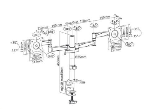 Kancelářský stolní držák na 2 monitory Fiber Mounts M71C4 Stolní držák na 2 monitory 13-27", otočný, sklopný, výškově polohovatelný, funkce pivot Stolní držák pro zavěšení 2 monitorů o úhlopříčce 13 až 27". Plně nastavitelný - otáčení do stran, náklon, výškově polohovatelný, funkce pivot, korekce roviny obrazovky. Nosnost 16kg, VESA standard 75x75 a 100x100. Stolní držák na 2 monitory v krásném designu. Fiber Mounts M71C4 je kvalitní a velmi pěkný stolní držák na 2 monitory, plně nastavitelnýStolní držák na 2 monitory do kanceláře pracovny nebo domácnosti Fiber Mount M71C4 Technické údaje: nosnost 16kg (2x8kg) podporuje VESA standard 75x75 a 100x100 doporučujeme na monitory o velikosti 13 až 27" obě ramena jsou plně otočná do stran obě ramena umožňují nastavení vzdálenosti od nosníku funkce PIVOT - horizontální nebo vertikální otočení obrazovek korekce roviny obrazovek 2 typy uchycení na stolovou desku uchycení na stolovou desku o síle 10 až 85mm celková výška 400mm úchytky na kabeláž barva stříbrná, nosník chromový záruka 2 roky. Fiber Mounts s.r.o., Nádražní 1296/4 69601 Rohatec Česká republika, mailto: info@drzakyastolky.cz