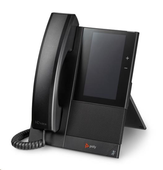 Audio Poly HD Voice; Technologie Poly Acoustic Clarity zajišťuje plně duplexní hovory a potlačuje akustickou ozvěnu i okolní šum; Technologie Poly Acoustic Fence potlačuje okolní hluk při použití sluchátka nebo kabelového sluchátka; Technologie Poly NoiseBlockAI odstraňuje většinu okolního hluku při používání konferenčního reproduktoru; Širokopásmový zvuk TIA-920, v souladu s typem 1 (plně duplexní IEEE 1329); Individuální nastavení hlasitosti s vizuální zpětnou vazbou pro každou zvukovou cestu; Detekce hlasové aktivity; Komfortní tvorba hluku; Generování tónů DTMF (RFC 2833 a v pásmu); Přenos zvukových paketů s nízkým zpožděním; Adaptivní paměti pro vyrovnání zpoždění