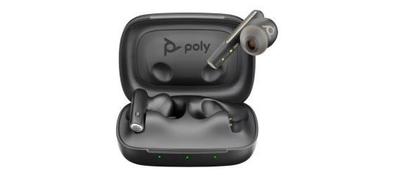 Popis Poly Voyager Free 60 MS Teams bluetooth headset, BT700 USB-A adaptér, nabíjecí pouzdro, černá