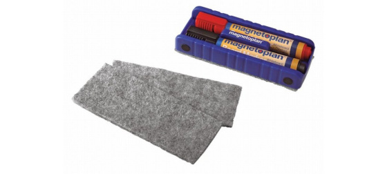 Start sada Magnetoplan BASIC. Obsahuje: magnetickou stěrku s černým a červeným popisovačem v plastovém těle stěrky. Stěrka s filcem tloušťky 5 mm.. Holtz Office Support GmbH, Berta-Cramer-Ring 14-16, Wesbaden 65205, DE, info@holtz-gmbh.de
