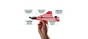 Rychloupínací systém umožňuje experimentovat nejen s obyčejným papírem, ale i s lehkým kartonem, balzovým dřevem nebo pěnovými materiály. Palubní počítač navíc sám dorovnává drobné nepřesnosti ve skládání, takže i úplní začátečníci zažijí hladký let hned na první pokus.