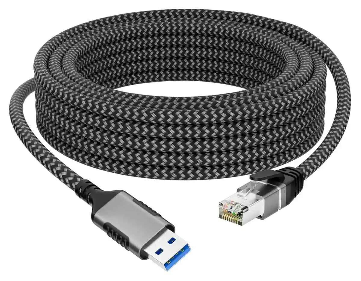 Síťový kabel USB 3.2 na Ethernet 10/100/1000 MBIT je kabel-konvertor USB 3.2 pro síť Gigabit Ethernet, která poskytuje síťové rychlosti až 1000Mbps přes port Ethernet RJ-45. Je kompatibilní s předchozími verzemi počítačových systémů se sítěmi USB 2.0 a USB 1.x a Ethernet 10/100/1000 Mb / s. Tento přenosný kabel je ideální pro stolní počítače nebo jako doplněk k notebookům. Připojuje router, modem nebo síťový přepínač k portu USB-A notebooku nebo tabletu.