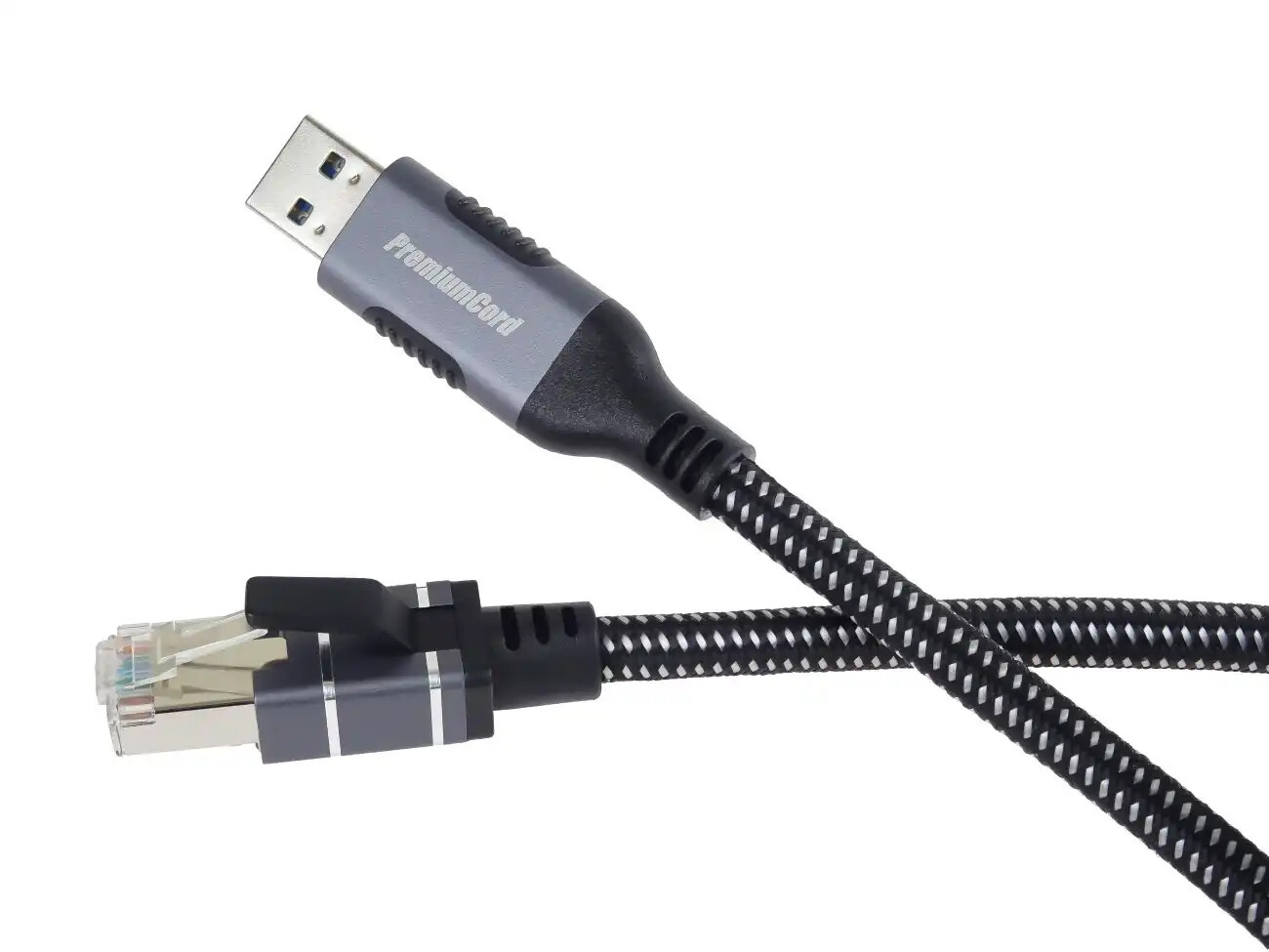 Kabel s integrovaným adaptérem USB3.2 na LAN RJ45 Ethernet 10/100/1000 MBIT, Fast Ethernet kabel umožní připojit počítač s USB3.2 portem do sítě ethernet RJ-45. Zařízení je vhodné například pro notebooky nebo počítače bez síťové karty.
