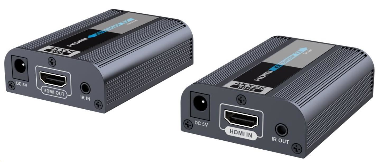 - Extender přenáší HDMI digitální obraz, zvuk a IR řídící signály
