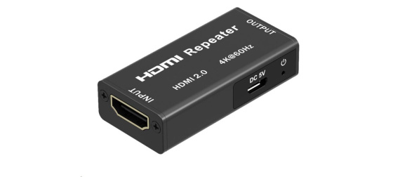 - Extender je napájen z HDMI sběrnice, repeater má přídavný konektor pro napájení, ve většině případů toto přídavné napájení není třeba zapojovat, repeater je napájen z HDMI