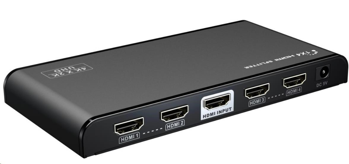 Popis PremiumCord HDMI 2.0 splitter 1-4 porty, 4K x 2K/60Hz, FULL HD, 3D, černý