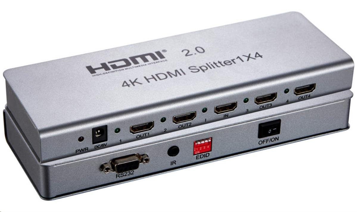 PremiumCord HDMI 2.0 splitter 1-4 porty, 4K x 2K/60Hz, FULL HD, 3D