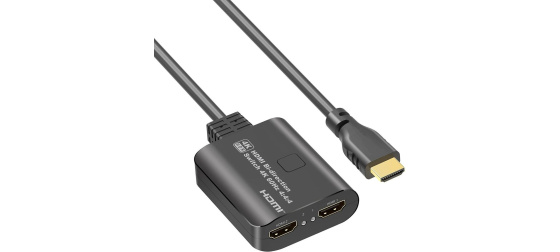 2 HDMI zařízení sdílejí 1 HDMI obrazovku nebo přepínač z jednoho zdroje HDMI signálu přepíná na dva monitory (vždy se zobrazuje obraz pouze na jednom z monitorů). Výběr zařízení je tlačítkem na přepínači.