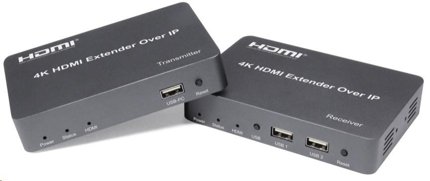 PremiumCord HDMI extender s USB na 150m over IP, bez zpoždění