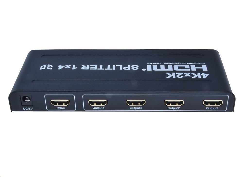 Popis PremiumCord HDMI splitter 1-4 porty, kovové pouzdro, 4K, FULL HD, 3D