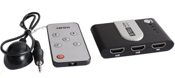 3 HDMI zařízení sdílí 1 HDMI výstupní zařízení (obrazovku). Výběr zařízení buď automaticky, tlačítkem nebo dálkovým ovládáním.