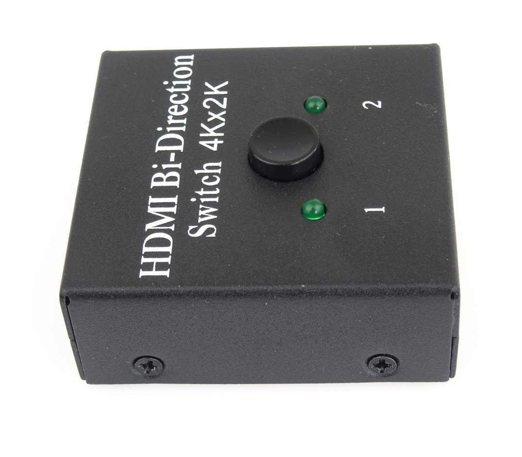 - Obousměrný 2x1 / 1x2 Přepínač HDMI lze použít dvěma různými způsoby: připojit 2 vstupní zdroje s 1 výstupním displejem nebo 1 vstupní zdroj se 2 displeji (funguje pouze na 1 obrazovce, nikoli současně).
