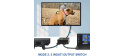 2 HDMI zařízení sdílejí 1 HDMI obrazovku nebo přepínač z jednoho zdroje HDMI signálu přepíná na dva monitory (vždy se zobrazuje obraz pouze na jednom z monitorů). Výběr zařízení je tlačítkem na přepínači.