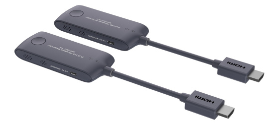 - Vysílací a přijímací adaptéry mají krátký HDMI kabel pro snadné zapojení do počítače a zobrazovače nebo TV.