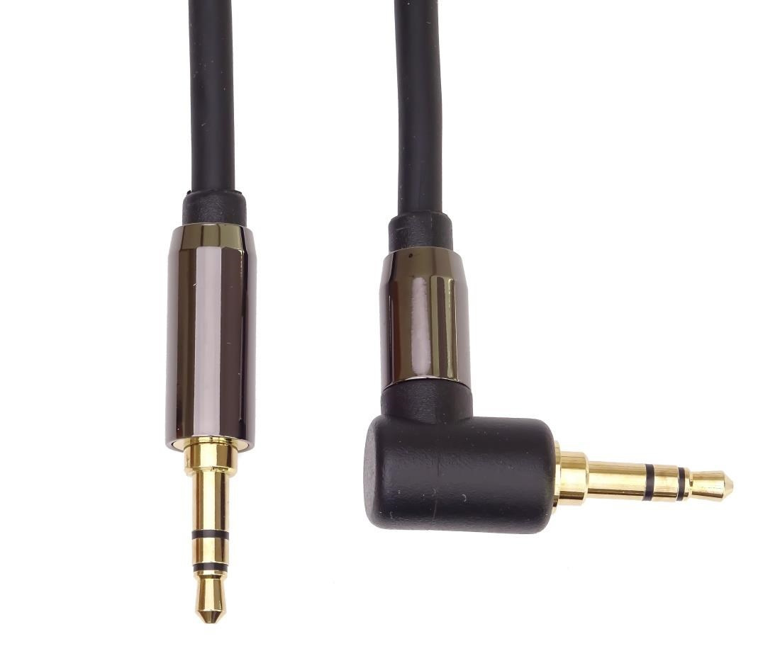 PremiumCord HQ stíněný kabel stereo Jack 3.5mm - Jack 3.5mm zahnutý 90° 5m