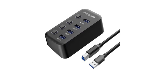 Hub umožní připojit do jednoho portu USB až 4 další zařízení USB. Zařízení je USB3.2 s rychlostí až 5Gbps. Pomocí vypínačů je možné jednotlivé USB periferie připojovat a odpojovat.