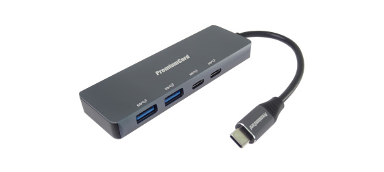 Popis PREMIUMCORD Hub USB-C na 2x USB 3.2 Typ-C +2x USB 3.2, 5G SuperSpeed, Aluminum
