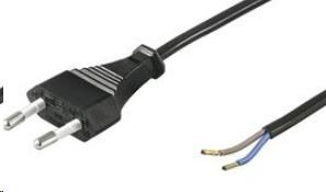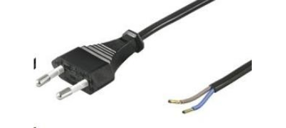 Flexo napájecí kabel v černém provedení pro montáž do zařízení. Dvoužilový kabel je zakončený standardní přístrojovou dvoukolíkovou zástrčkou a na druhém konci volné dva vodiče. Parametry a specifikace: První konektor: plochý euro konektor se dvěma kolíky Druhý konec: volné dva vodiče Průřez vodiče: H03VVH2-F2G 2x 0.75 mm2 Izolace: PVC Napětí max.:250V Proudové zatížení: max 2,5A Barevné provedení:Černé Délka kabelu: 2m Počet kusů v kartonu: 200 ks. KRUP s.r.o., Průhonická 133 25101 komerční zóna Čestlice u Prahy Česká Republika, krup.pha@krup.cz
