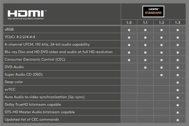- HDMI Ethernet Channel (HEC): Integrovaný vysokorychlostní přenos Ethernetu.