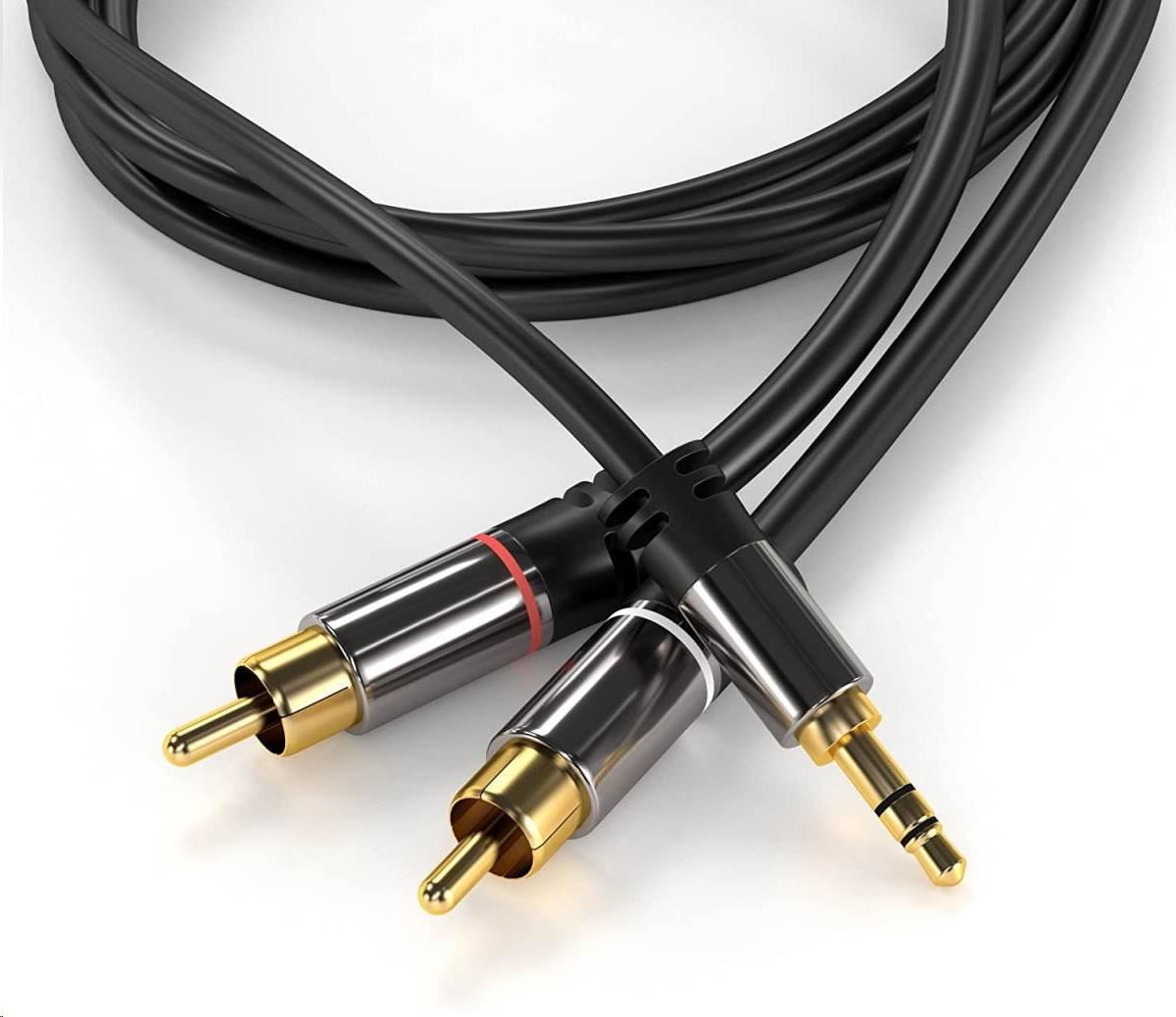 PremiumCord HQ stíněný kabel stereo Jack 3.5mm-2xCINCH M/M 5m
