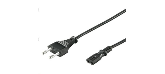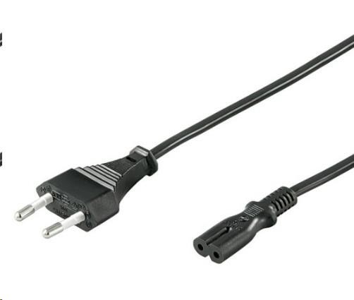 Napájecí kabel v černém provedení pro napájecí adaptér. Dvoužilový kabel je zakončený koncem v podobě ležaté osmičky.