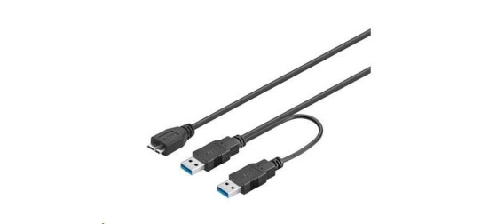 PREMIUMCORD Kabel USB 3.0 2xA - micro (M/F) 30cm DUÁLNÍ (extra napájení)