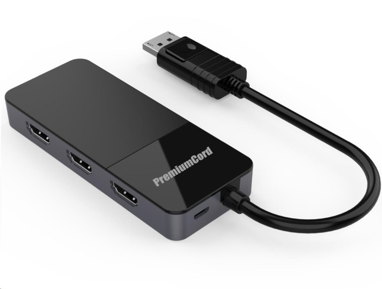PremiumCord MST adapter DisplayPort 1.4 na 3x HDMI2.0 monitory 4K@60Hz, extended + mirror + duplicate režimy