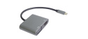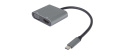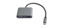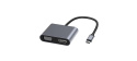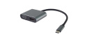 Tento adaptér umožňuje vysoce kvalitní převod videa a zvuku z USB-C konektoru na HDMI a VGA konektor pro dva monitory/TV/projektory. Funguje jako externí grafická karta s dvěma výstupy.