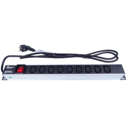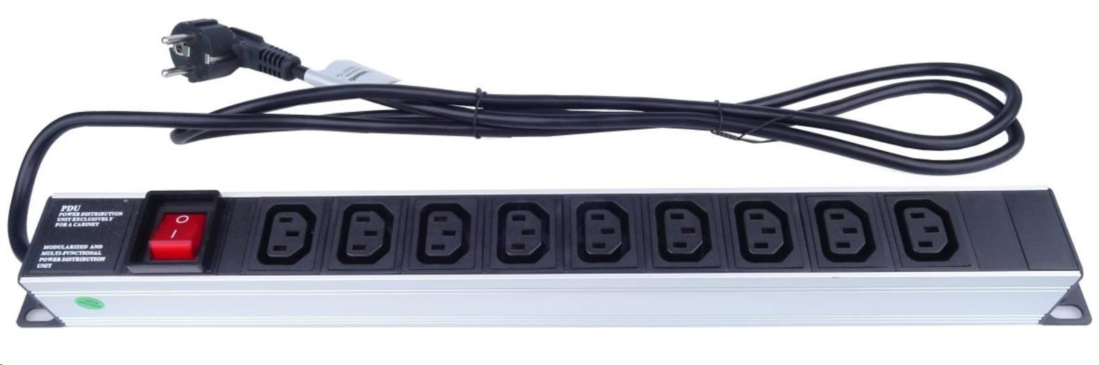 PremiumCord Panel napájecí do 19" racku 1U, 9xIEC (C13), 2m kabel,vypínač