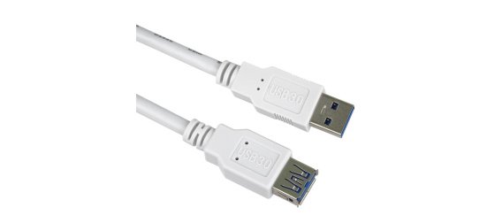 USB3.0 prodlužovací A-A kabel male-female, 9pin - 9pin, 3m, CU, AWG28/28, stíněný, UL, bílá